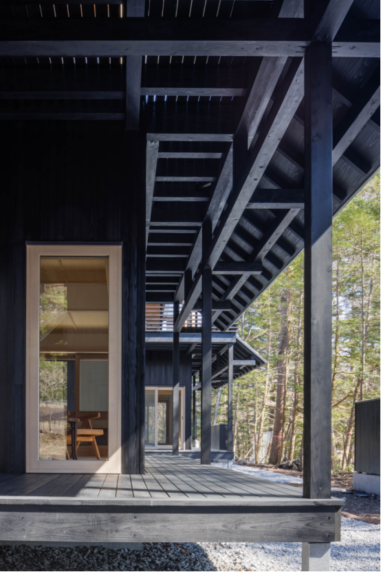 SSH No.03 是在輕井澤獅子巖之家(Shishi-Iwa House Karuizawa)開放的第三座建筑,這家雄心勃勃的日本酒店致力于利用優(yōu)質(zhì)建筑的潛力來提升福祉。新增部分由一系列極簡主義的黑色“盒子”組成,仿佛漂浮在森林中,彼此分離又相互連接,懸浮的走道、走廊和隱藏的花園在樹木間若隱若現(xiàn)。自然與建筑之間展開的對話成為焦點。