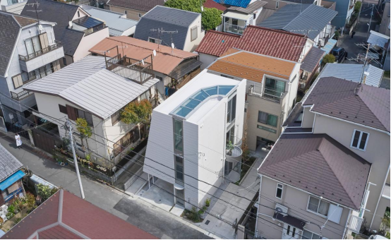 郊區(qū)日本這個住房實驗室 continues to delight(持續(xù)帶來驚喜)。Scoop Landscape House?是 Not Architects Studio 的一個項目,該工作室是由富永哲志(Tetsushi Tominaga)、小野麗莎(Lisa Ono)以及七畑葵(Aoi Nahata)共同設立的 side project。小野為這座101平方米的日式住宅所做的概念設計,旨在創(chuàng)造一個能“舀起(scooped up)”周圍城市景觀最佳視野的空間,該地塊位于東京市中心以南的大田區(qū),面積 modest(不大)。