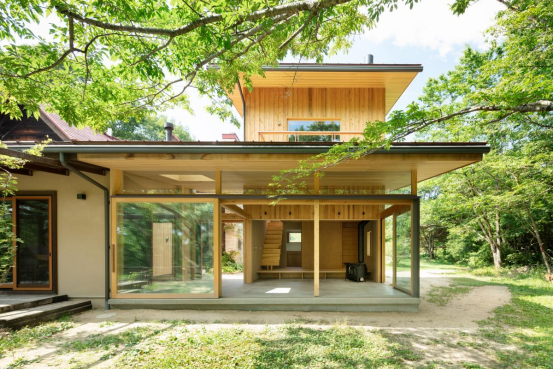 由 Takeshi Hirobe Architects 構(gòu)思的這座寧靜的輕井澤度假屋,是為一位尋求遠離城市生活的客戶設計的,其大窗戶經(jīng)過深思熟慮的定位,框出了日本鄉(xiāng)村高地的森林和溪流景觀。這座兩層木結(jié)構(gòu)建筑采用了一個中央木桁架剪力墻,既加固了建筑,又增強了其空間特性。它還旨在抵御該地區(qū)嚴酷的冬季,采用了深地基、地板下熱能儲存和燃木爐。
