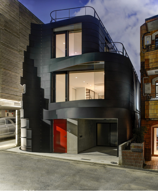 這個項目是2009年完成的設計經(jīng)典,位于美麗古城京都。房屋狹窄而巧妙地布置在一個 gently curving 的 footprint 上,坐落在一個受限的地塊內(nèi), exemplifies 日本城市中常見的 urban challenges——以及當?shù)亟ㄖ煂Υ说?ingenious 解決方案。