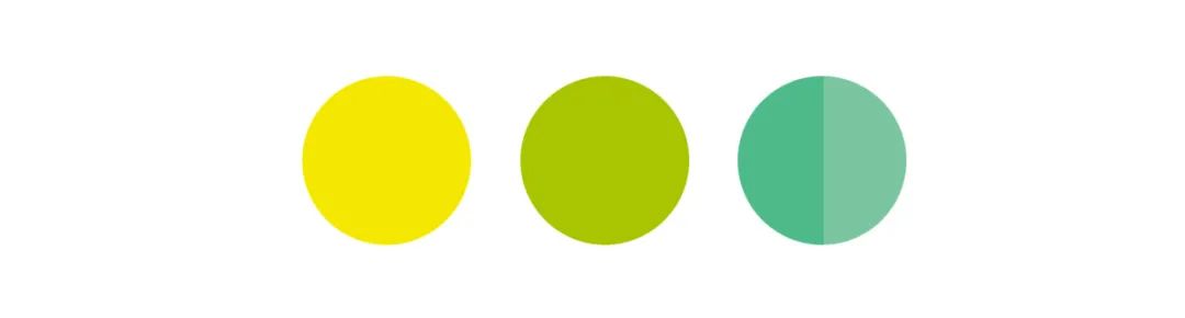 在調(diào)整后的方案中我使用了產(chǎn)品的類比色組合,即綠色、青色、黃色,