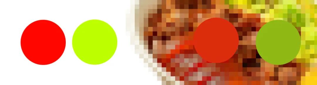 對于這種情況,我們則需要把它的飽和度適當降低,比較穩(wěn)妥的做法是拾取圖片中的顏色。把圖片復制一層,然后選擇濾鏡-像素化-馬賽克,選擇一個合適的參數(shù),就能得到上圖的效果。把原圖中的紅色和綠色用圖片中的紅色和綠色替換,然后把標題和副標題的顏色改為暗紅色,這種“爆”的感覺就立馬消失了,如果背景使用一點點漸變效果,那么與圖片的融合性會更好。