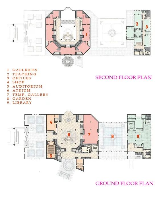 貝聿銘試圖沉淀廣闊伊斯蘭世界的建筑“精髓”,并且十分忠實于自己的幾何設計以及它帶來的諸多可能性,特別是像圓形、正方形和八邊形這樣的形狀,可以通過旋轉來創造多樣的視角和新穎的圖案。