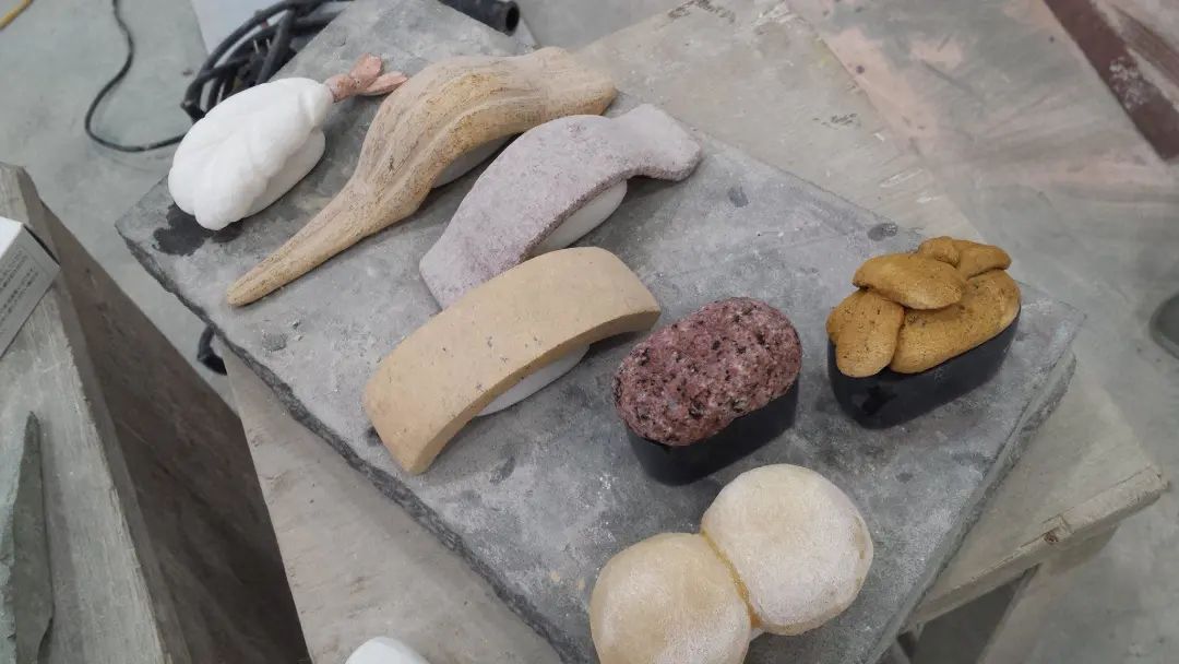 接下來,就讓我們一起來欣賞一下馬里·哈馬希拉的石雕壽司作品吧,千萬不要被這些壽司騙到,它們可不是能放進嘴里吃的食物。