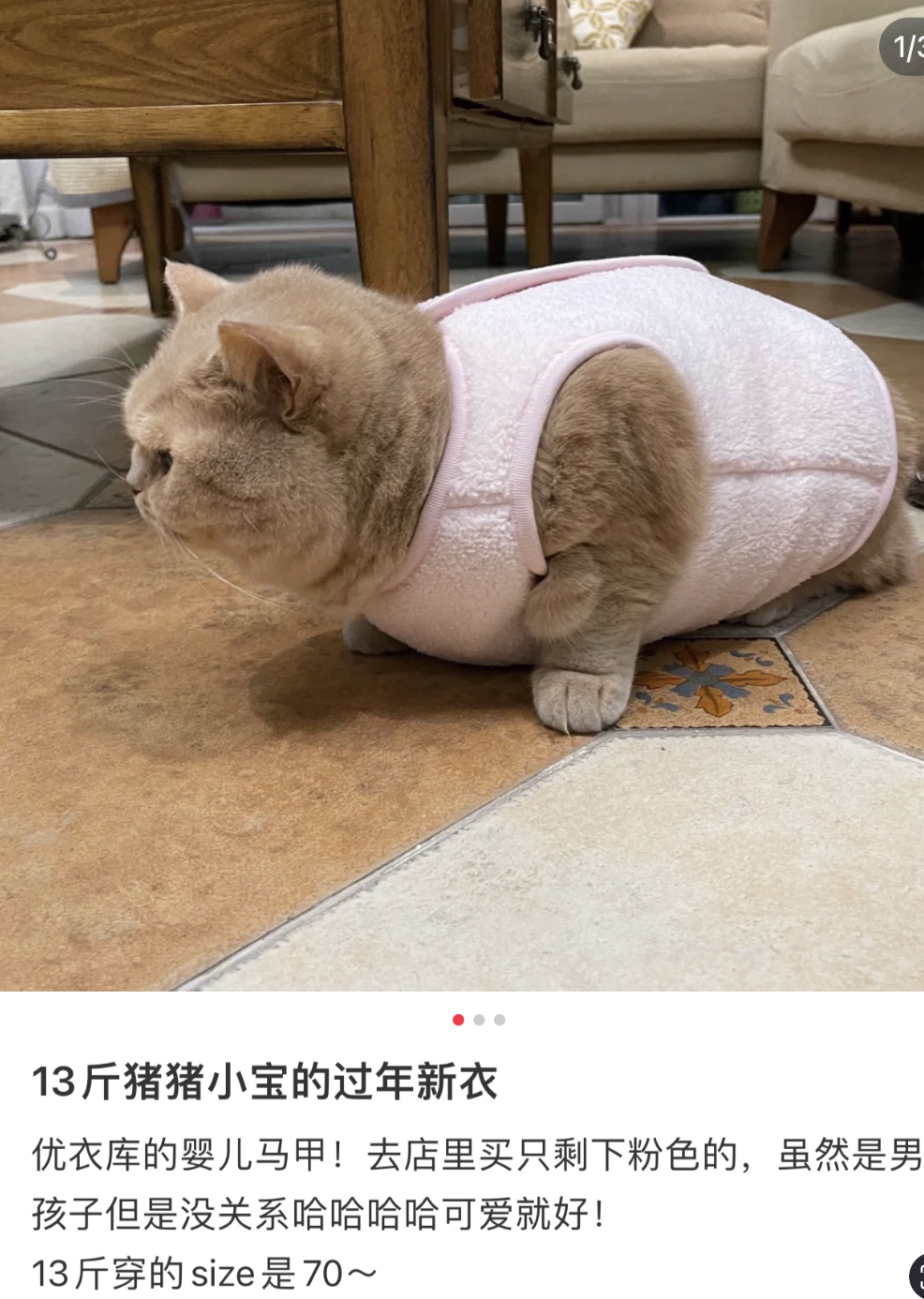 尺寸不合適寵物服裝通常只有s、m、l三個尺碼,但對于過大過小的寵物來說,已經不太適用,近幾年流行的寵物審美偏向渾圓,圓滾滾的寵物根本套不進網上買的衣服。“長度合適,袖子就不合適,袖子合適了,又會買大,即使按照網店推薦的尺寸購買,還是很容易出錯。”“優衣庫童裝的衣服尺碼很全,至少你可以買到大多數寵物都能套上的衣服?!?/p>