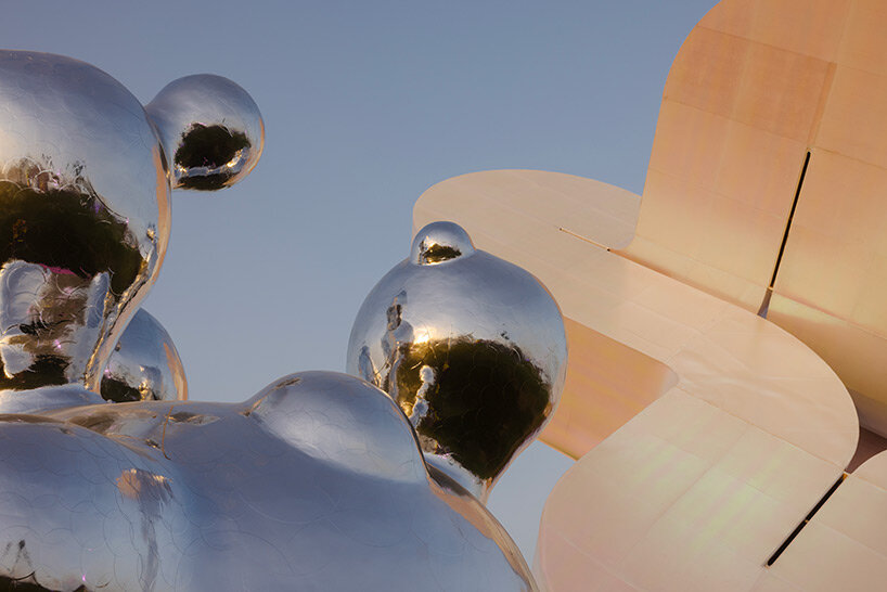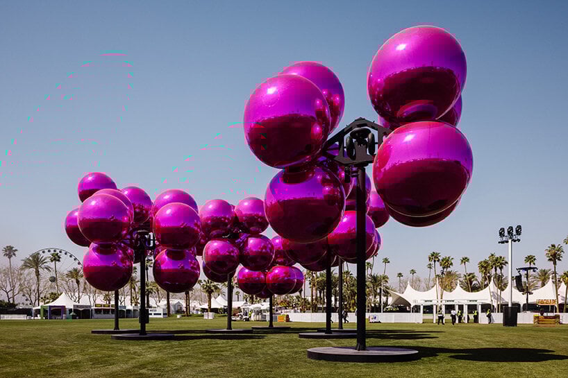 從遠處看,該裝置喚起漂浮在空中的巨大粉紅色云彩,從近距離可以看到節(jié)日,天空和彩色球體中反射的人。此外,圍繞與科切拉團隊合作開發(fā)的增強現(xiàn)實體驗加強了其夢幻般的維度以及現(xiàn)實與虛構(gòu)之間對話的想法?!?/p>