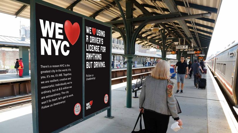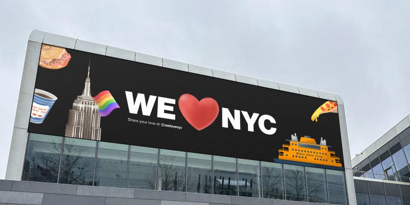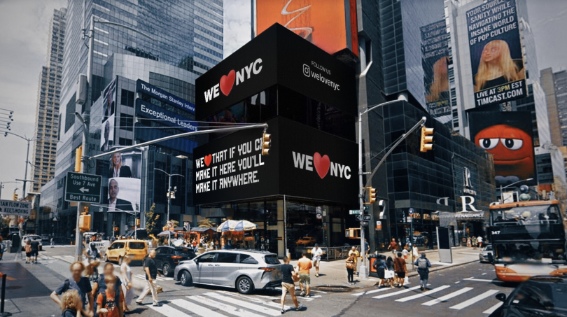 首先,文字從‘我愛紐約’變為‘我們愛紐約’。意圖似乎是要認可紐約人在疫情期間相互支持的方式。?