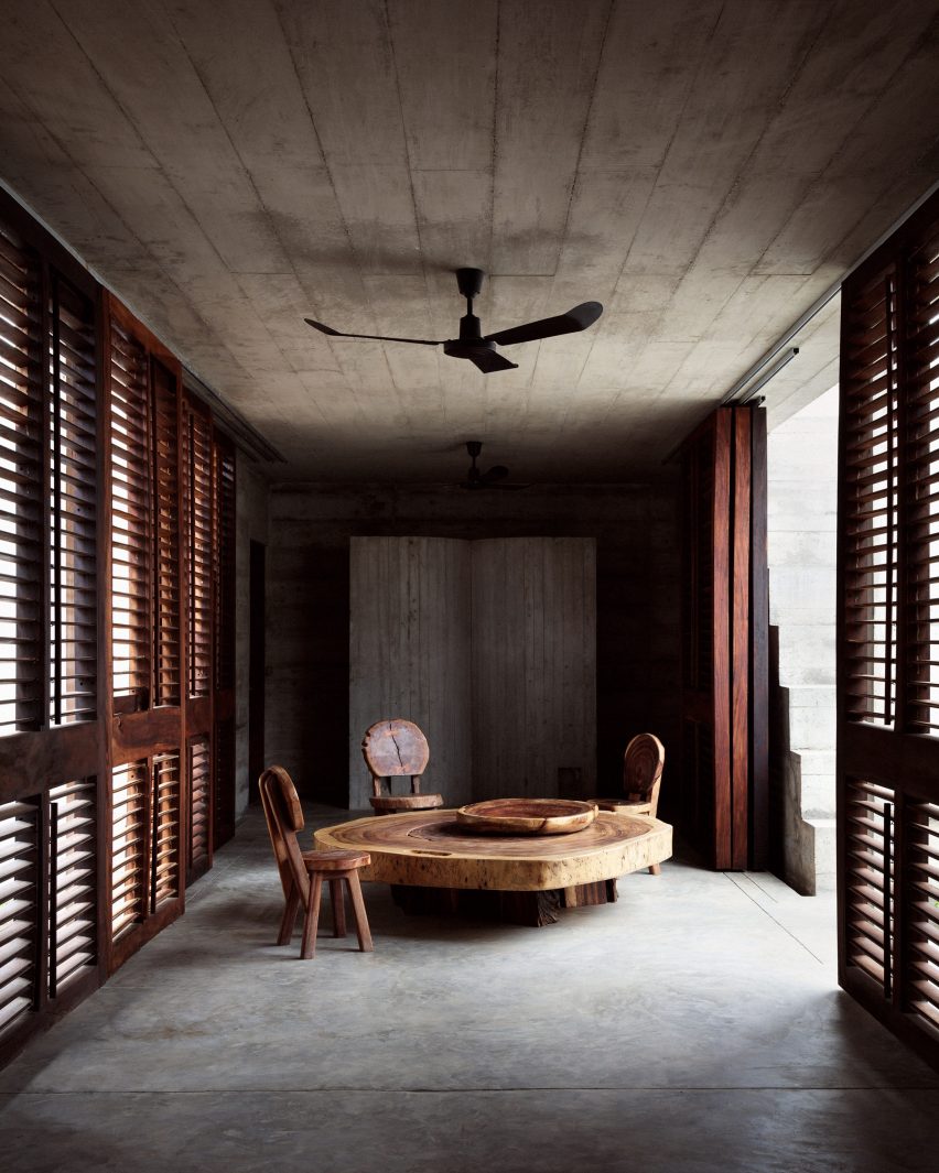 該項目完美詮釋了brutalist建筑在溫暖氣候下的發展可能性。粗獷的混凝土外觀融入室內,賦予空間獨特的質感與氛圍。而木材,綠植等自然材質和元素的添加,又很好地平衡了空間,使之既具有brutalist風格的參量感,又不失溫馨舒適的家居氛圍。