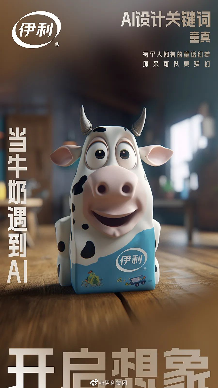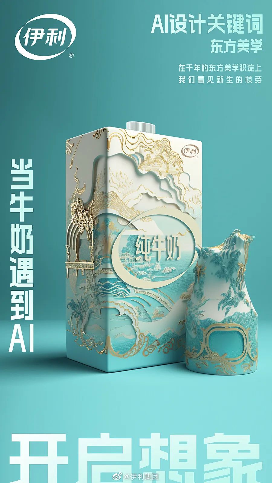 這不,在乳制品行業(yè),伊利集團便首發(fā)推出6款由AI制作的牛奶包裝!