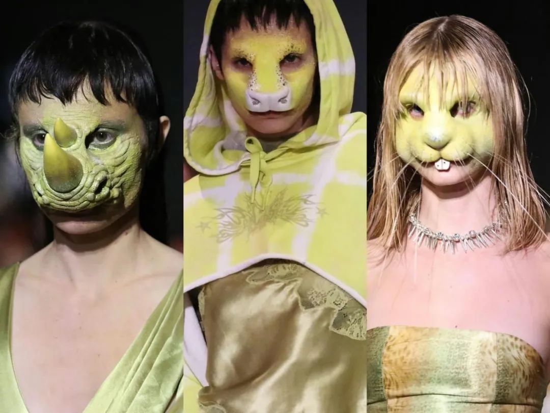 模特們戴著Isamaya Ffrench制作的動物假肢模型出現在秀場上,本季設計師在美國各地收集了廢棄面料及可持續面料,來呼吁人們保護生態平衡與動物。
