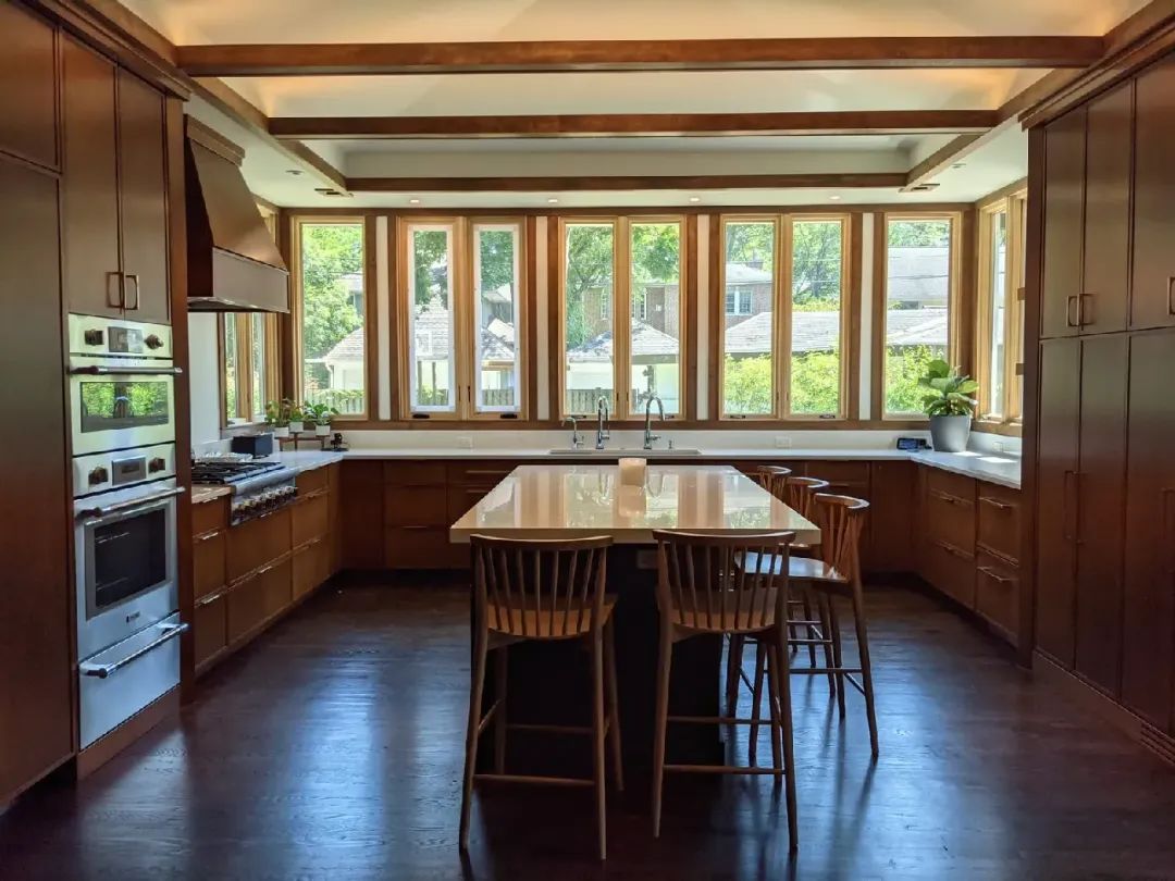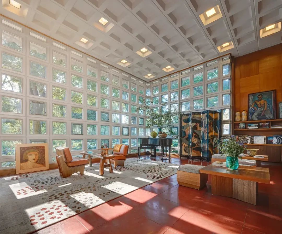 16年前,戴爾·摩根買下特克爾之家時,就已做好迎接現代主義變革的準備?!拔覀冏≡谝粭澐浅鹘y的地中海式房子里,決定要做一些當代和現代的事情。” 在交出房產證的二十年前,這對夫婦曾參觀過賴特的家,并認為他們永遠不會住在這樣的房子里。“我們過來參觀了一晚,沒有留下深刻印象,因為它處于很糟糕的狀態,屋頂漏水,房子的一切都不對。”?但二十年后,夫妻倆和房子似乎都變了。?
