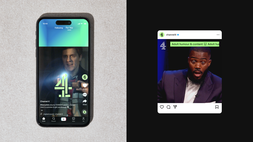 無論是在Instagram、Tiktok還是智能電視上,Pentagram的運動原則支配著在Channel 4的所有移動,確保觀眾對品牌移動方式的體驗具有一致性。“4”標志基于物理的彈性允許反應和動感,而移動和變換原則為在Channel 4不斷擴大的宇宙中移動創造了明確但靈活的參數,并規范著最小的數字交互。