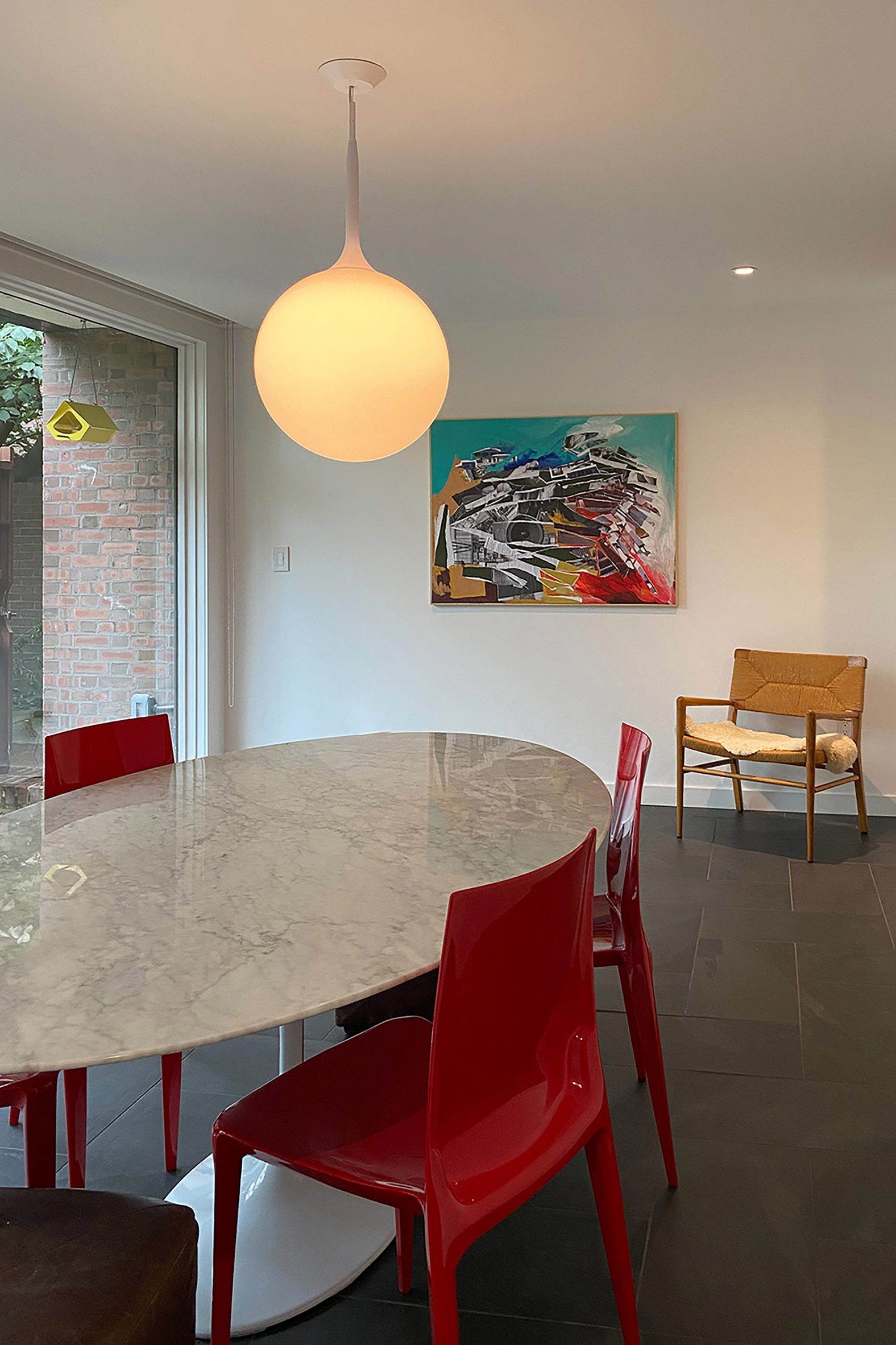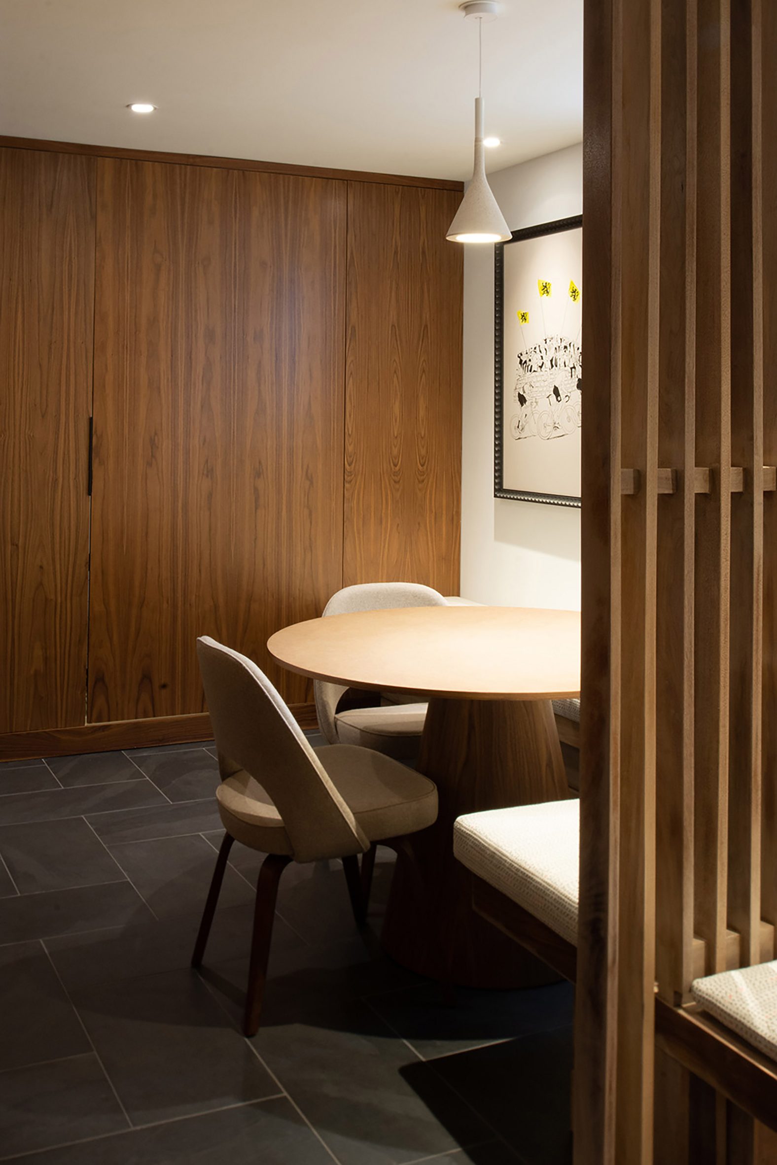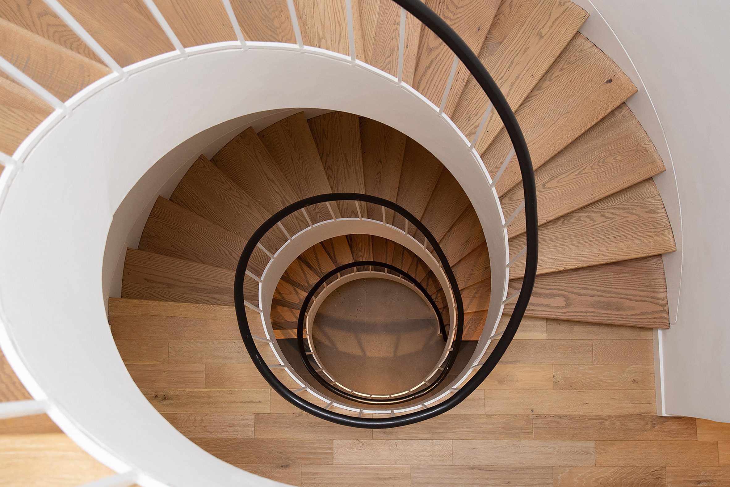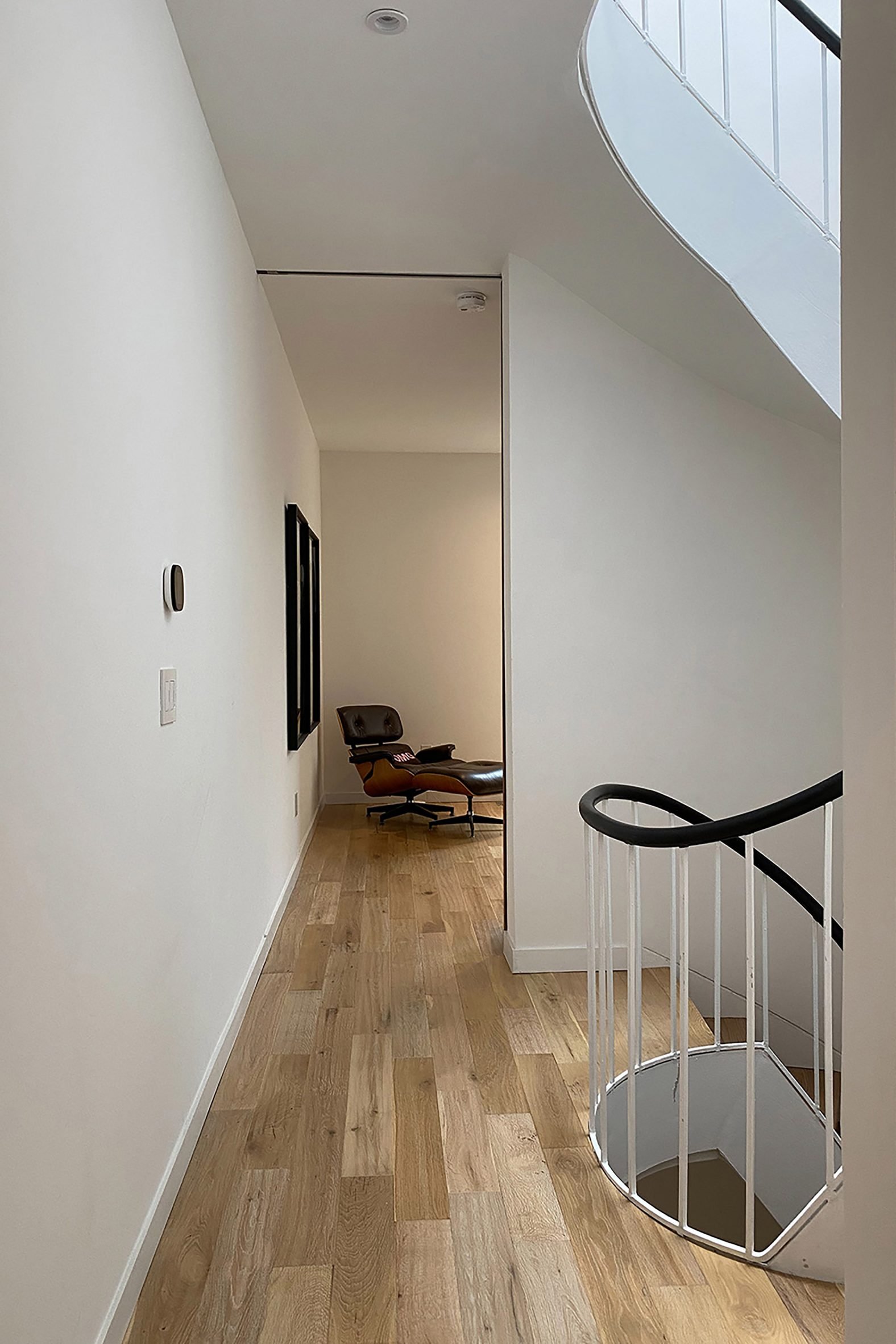 在室內,一座從地下室延伸到三層的中央樓梯對重新設計起著至關重要的作用。Shiftspace按照Pei的設想,圍繞著這座螺旋樓梯重新布置了房屋,并引入了一系列開放式的起居空間。
