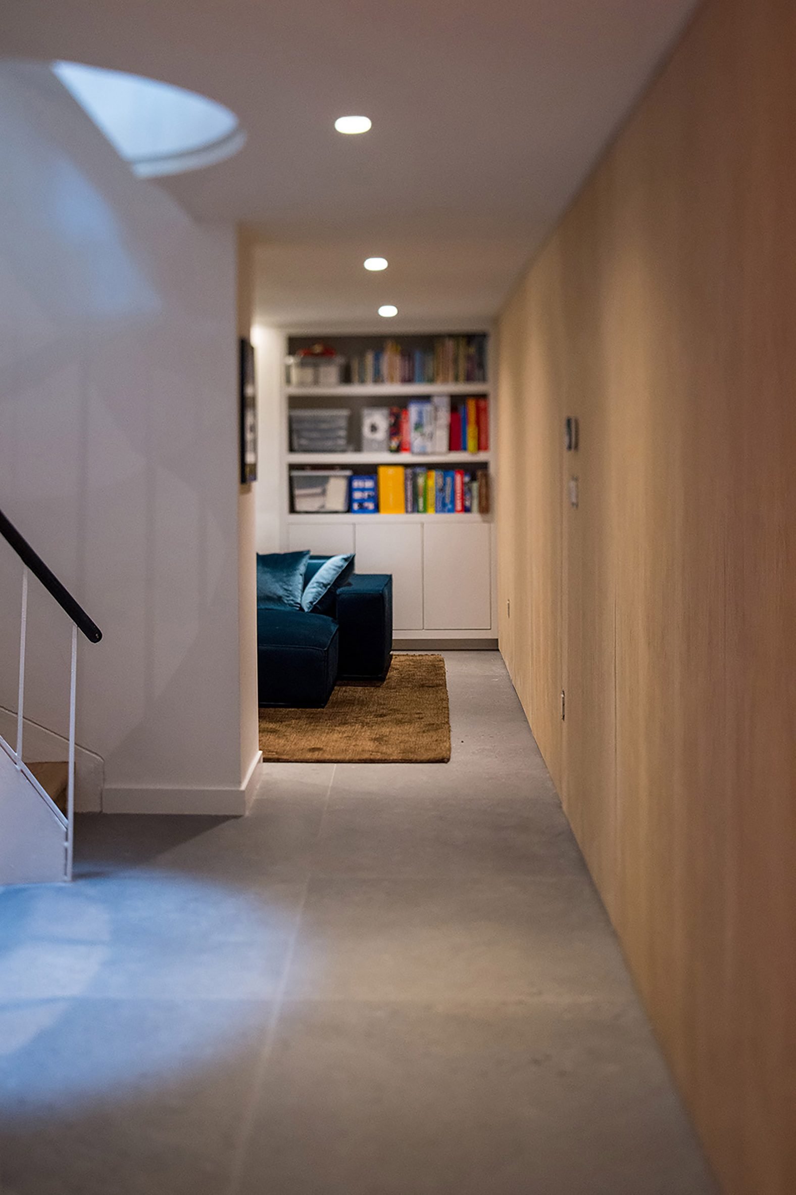 工作室在樓梯頂部的中央天窗處添加了一個新的框架,將額外的光線引入這個主要沒有窗戶的結構中。他們還在臥室中添加了天窗。