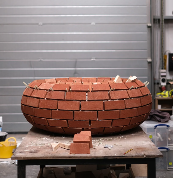 13種不同的磚塊構(gòu)成長椅圓潤的形狀
