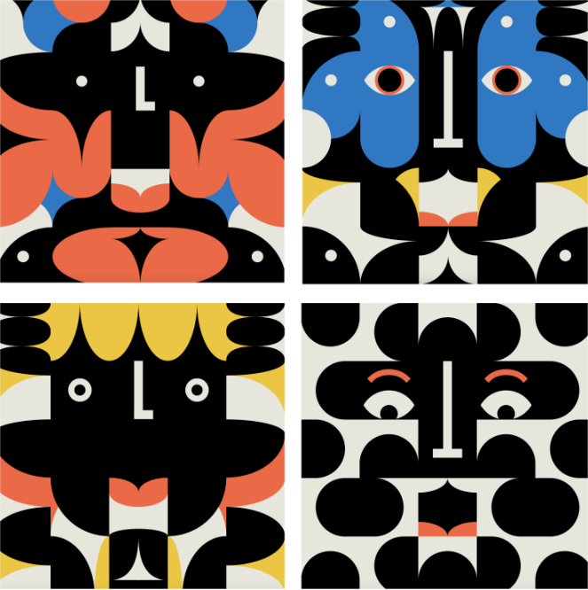 Carolina的目標(biāo)是打造一種能夠體現(xiàn)生成藝術(shù)的趣味性,尤其是其中的不可預(yù)測(cè)性要素,同時(shí)保持簡(jiǎn)約感的作品。她透露:“積木的想法是這個(gè)項(xiàng)目的起點(diǎn)。此外,我還希望融入有趣的面部表情,構(gòu)想一個(gè)能夠生成無限多的具有獨(dú)特但相似特征的角色的代碼。”