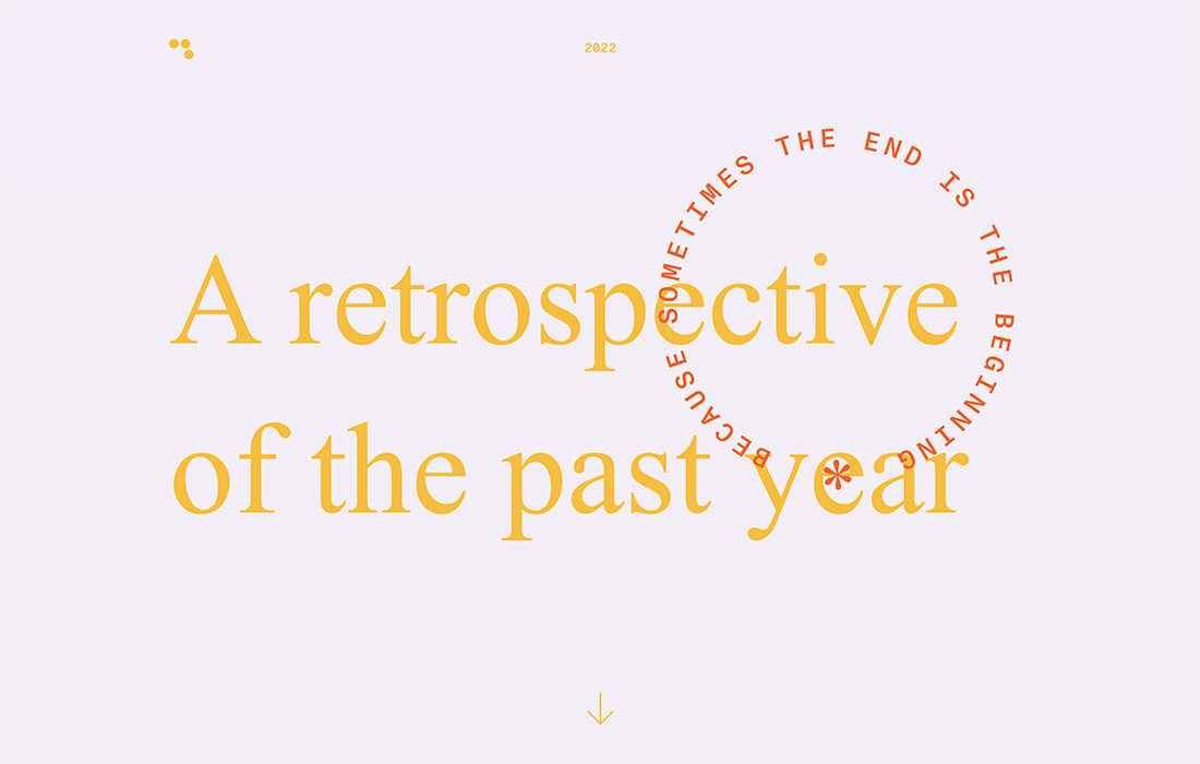只有在此之后,你才開始思考由于顏色對(duì)比度和層疊的文字而帶來(lái)的可讀性挑戰(zhàn)。甚至在屏幕頂部的小小“2022”也會(huì)在滾動(dòng)時(shí)疊加在文字元素之上。如果你試圖專注于文字,這在視覺(jué)上需要花費(fèi)很多精力來(lái)消化。