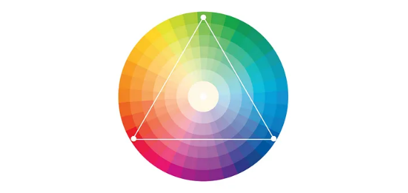 色環(huán)上三種顏色間隔均勻排列,提供充滿活力的對(duì)比效果,同時(shí)保持諧和。需要使一種顏色主導(dǎo),其他兩種作為點(diǎn)綴。