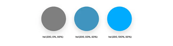 飽和度(S): 決定顏色的活力。0%完全不飽和(灰色),100%完全飽和。