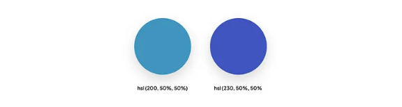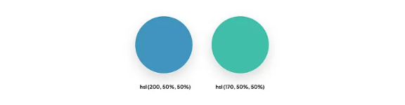 這些顏色在色輪上與您的基礎(chǔ)色相相鄰。對(duì)于藍(lán)色,考慮青色(hsl(170,50%,50%))或紫色(hsl(230,50%,50%))的色調(diào)。