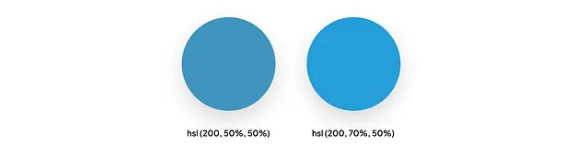 代表“色相(Hue)”、“飽和度(Saturation)”和“亮度(Lightness)”。色相是顏色,飽和度是強(qiáng)度,亮度就是顏色的明暗程度。