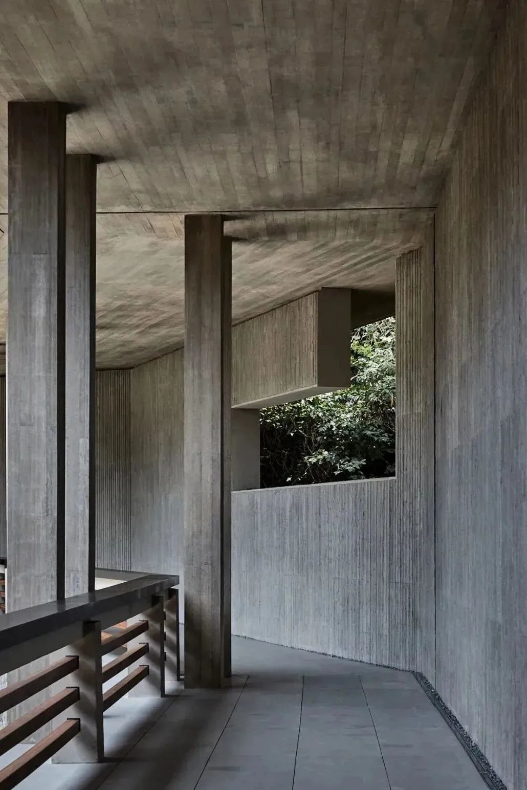 整體建筑在南北密度上做了很大的區(qū)分,南部是園林,與場地山勢融為一體,北部的密度則較高,滿足建筑藏書的需求。建筑的主館則作為整座園林的核心,介于南北之間,這是一種在中國傳統(tǒng)園林中非常常見的布局方式。