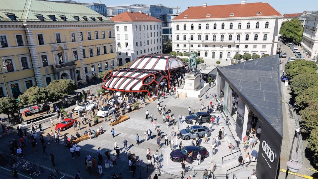 就在Open Space廣場的中心,擺放著一個巨大的911,它充當了節日的“帳篷”,采用了沒有輪子的911形狀,用來容納展會的各種活動,并保護游客免受夏日陽光的照射。這個結構還向911首次在60年前的IAA上首次亮相致敬。