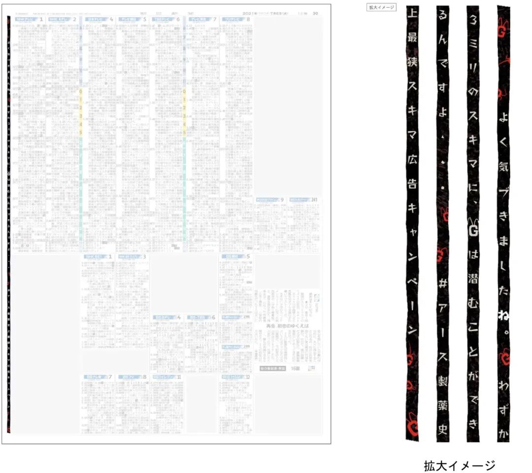 日本一個制藥公司,在蟑螂頻發的夏季宣傳他們的蟑螂藥,在報紙上制作了“地球史上最狹窄的廣告”——
