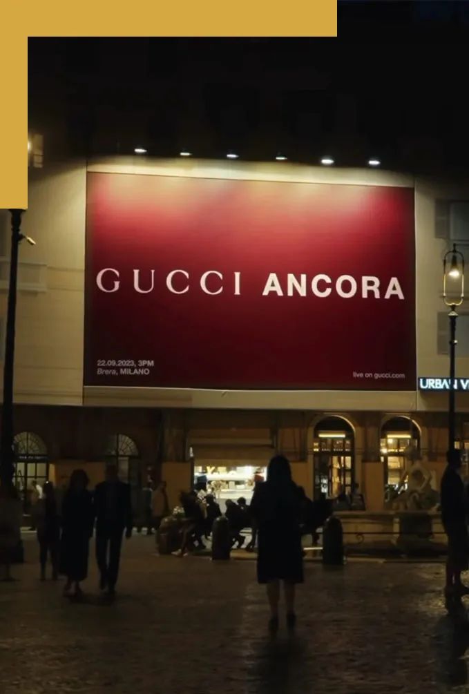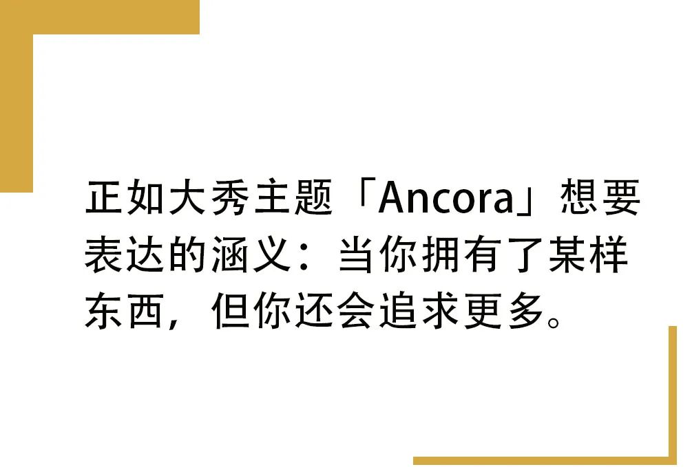 此次大秀被命名為:「Gucci Ancora」。Sabato De Sarno在秀前對媒體解釋道:“Ancora意味著再一次,但更加個性化;不是你失去的東西,而是你仍然擁有的東西,但你想要更多,因為它讓你快樂。”