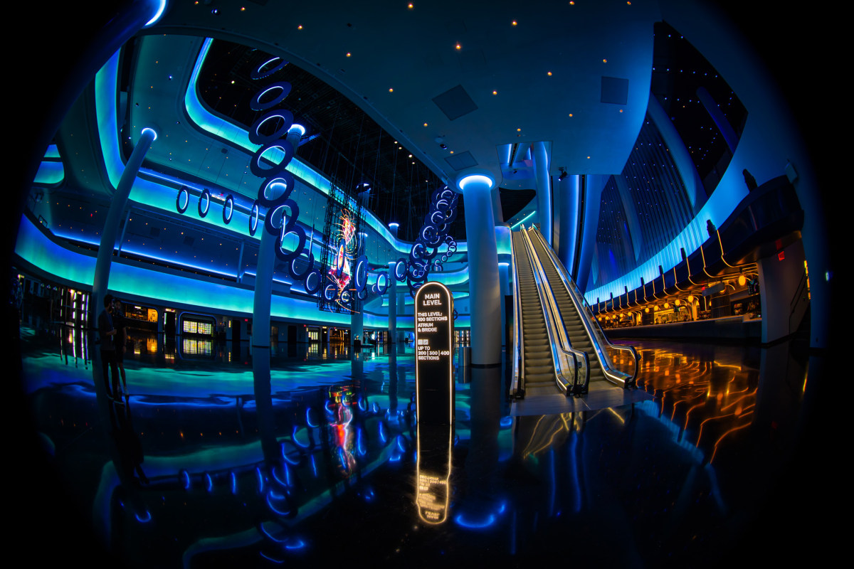 Sphere的特點是一個八層的中庭,周圍是圓形的夾層,中庭內有交叉的自動扶梯和飛越式橋梁。它與劇院本身一樣富有沉浸感,充滿異世界的氛圍。為增加反射性和一種異世界的無限感,地板采用了光滑、高度拋光的黑色水磨石。幾乎沒有直線存在。