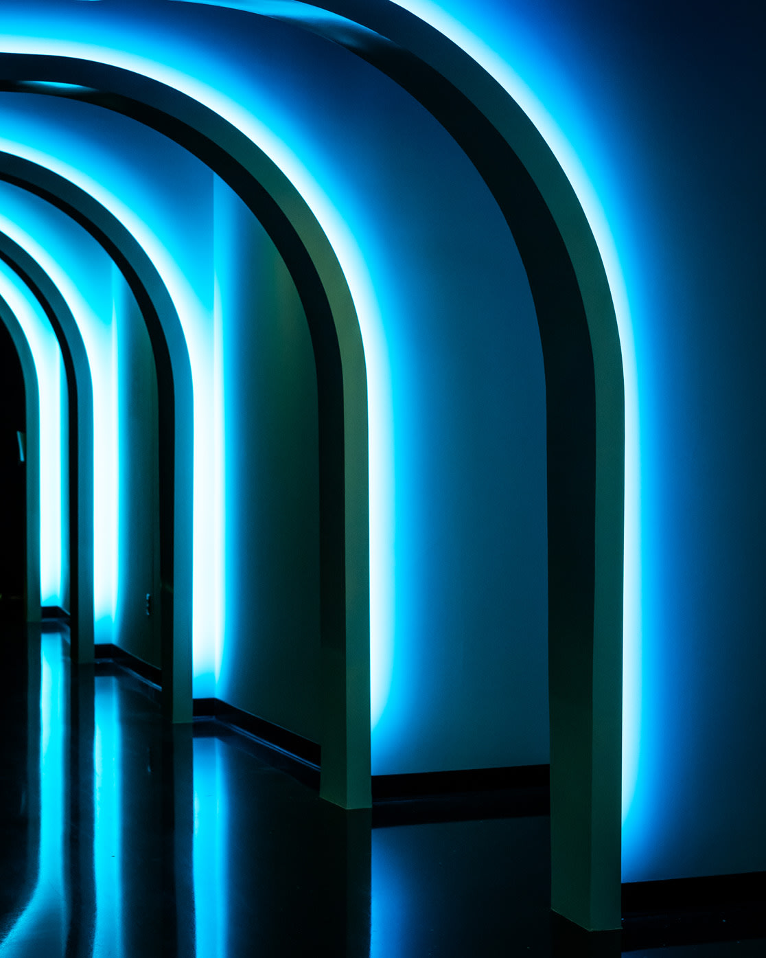Ohayon表示,照明系統“有一個可以與您交流的個性”,幾乎每個表面都采用間接LED照明照亮,可以根據任何表演的情感或主題來定制強度、溫度或顏色。入口和出口門檻由低矮的拱門組成,它們將您壓縮,然后戲劇性地釋放您進入更高的空間。