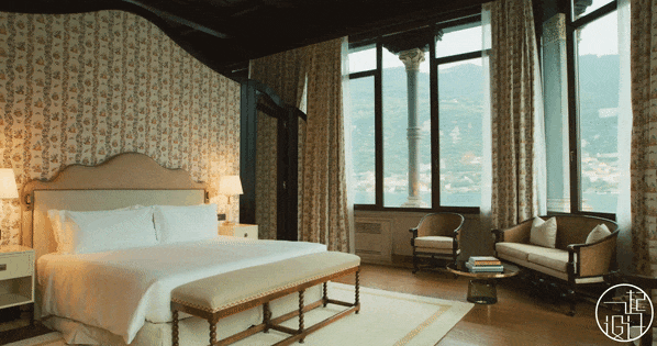 客房內的設計大氣優雅,復古的印花壁紙有種法式的浪漫和精致,搭配一些木制古董家具,很有意式城堡的感覺。