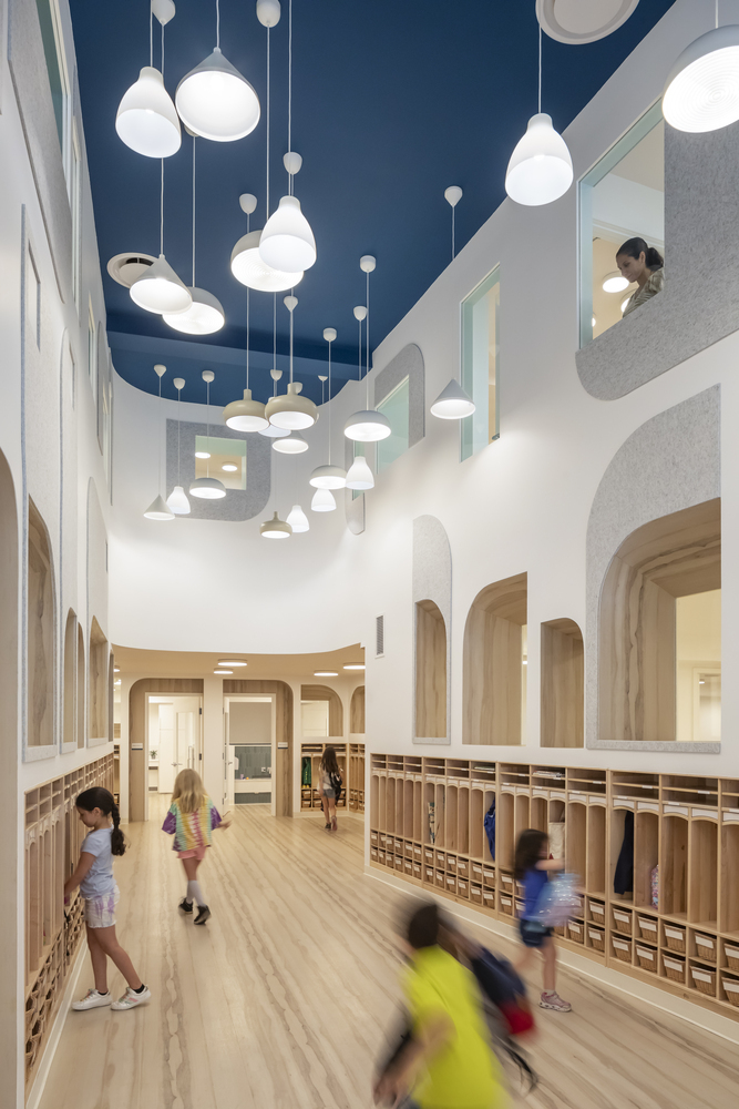 對于兒童,設計師使用無毒、防滑材料,圓弧邊緣,以及縮小所有設備和裝置的尺寸,以適應他們的身高。對于老年人,室內空間幾乎沒有樓梯,通道寬敞,設有支持他們移動的固定裝置。