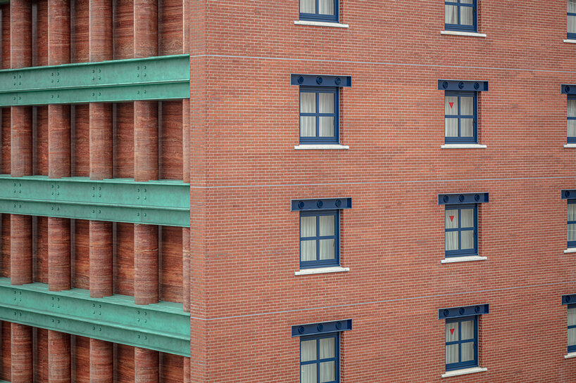 由Uchida Design重新設(shè)計(jì),引入了新的色彩調(diào)色板和詮釋,更新了酒店最初的三色方案,即紅色、綠色和藍(lán)色。這種現(xiàn)代的重新詮釋為空間增添了現(xiàn)代氛圍,融合了格柵和條紋等元素。照明分布經(jīng)過(guò)精心設(shè)計(jì),與酒店獨(dú)特的地下空間和客房走廊相協(xié)調(diào)。Rossi最初的構(gòu)想旨在模糊公共和私人空間之間的界線,創(chuàng)造一個(gè)建筑內(nèi)的城市。重新設(shè)計(jì)延續(xù)了這一精神,計(jì)劃利用前廣場(chǎng)舉辦社區(qū)活動(dòng)和農(nóng)貿(mào)市場(chǎng),實(shí)現(xiàn)Rossi最初的無(wú)邊界空間夢(mèng)想。