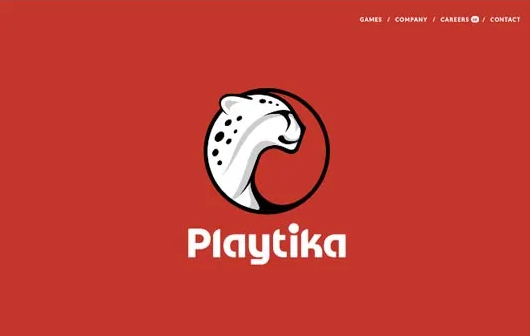 游戲設計公司Playtika的登陸頁面具有積極而有力的特點。有趣而令人振奮的紅色與其獵豹標志相得益彰——這本身就是一個強大的圖標,因其卡通般的特質和擬人化的微笑而變得柔和。