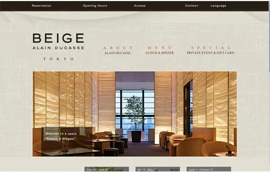 東京餐廳Beige Alain Ducasse以米色為背景,為可點擊文本和照片等更相關的元素創造了一種寧靜、舒適的背景。