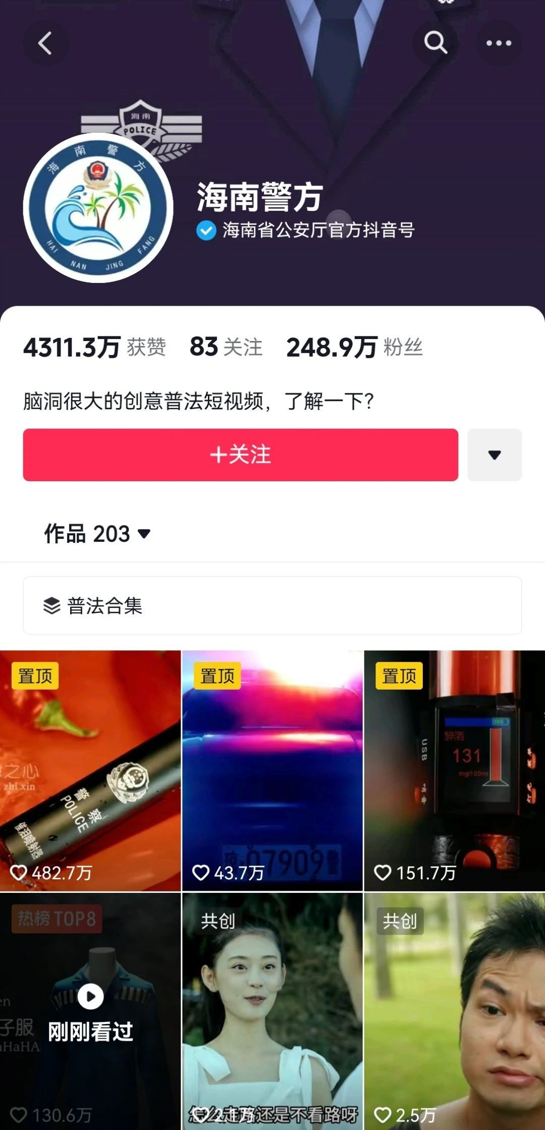 網友:海南警方的普法宣傳片都沒有創作瓶頸期的嗎?