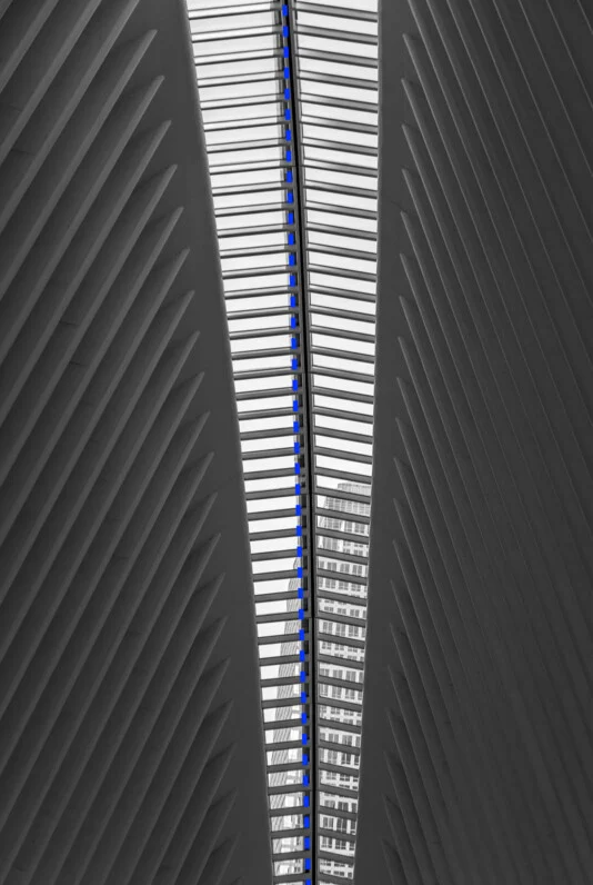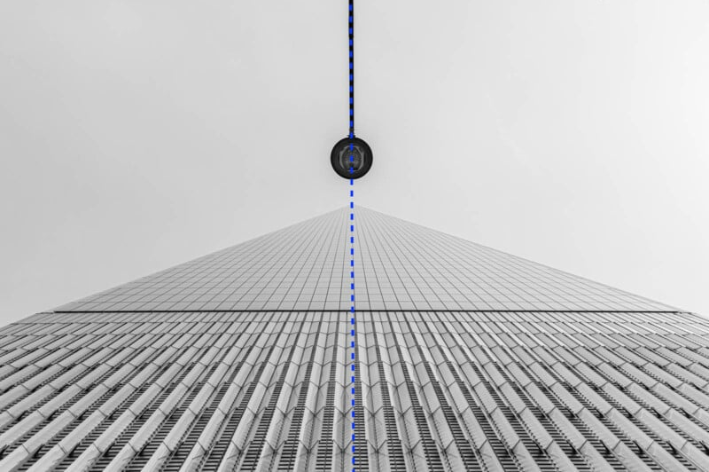在城市中,往往可以通過仰望找到垂直對稱。摩天大樓伸向天空,燈桿甚至電線桿都提供了垂直對稱的構(gòu)圖。要創(chuàng)建垂直對稱的元素,只需要某種線條在垂直方向上劃分圖像,并且兩側(cè)略微相同。