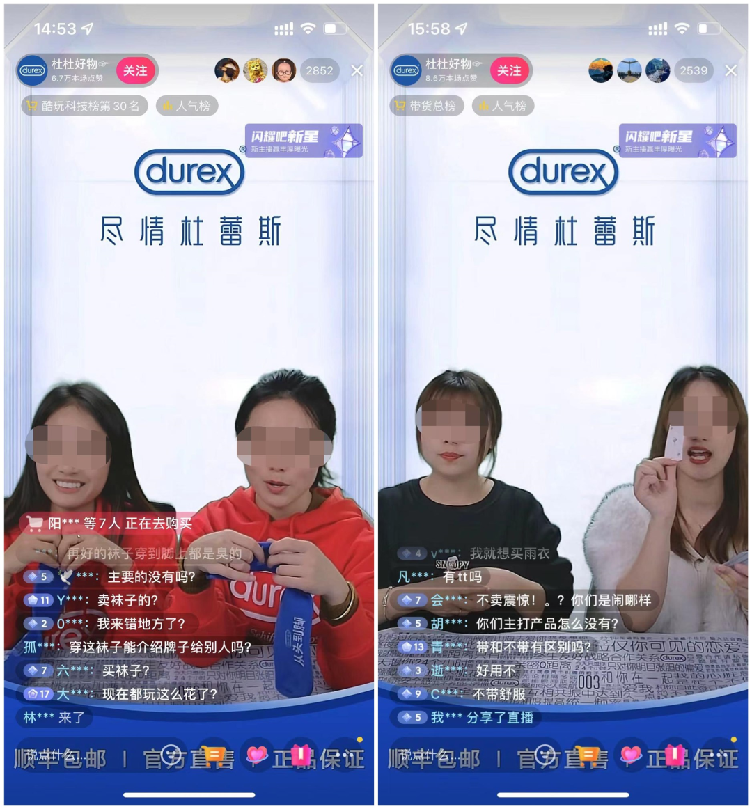 受制于平臺相關規定,杜蕾斯直播間只能“顧左右而言其他”,通過介紹品牌周邊,將消費者引流到安全套產品的櫥窗中,效果微乎其微。