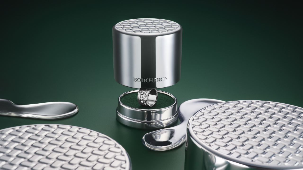 法國珠寶品牌Boucheron重新設計了其珠寶盒系列。經過兩年的開發,新的盒子系列僅采用了兩種材料——鋁和羊毛氈,與原始盒子的十一種材料相比,大大減少了材料使用量。