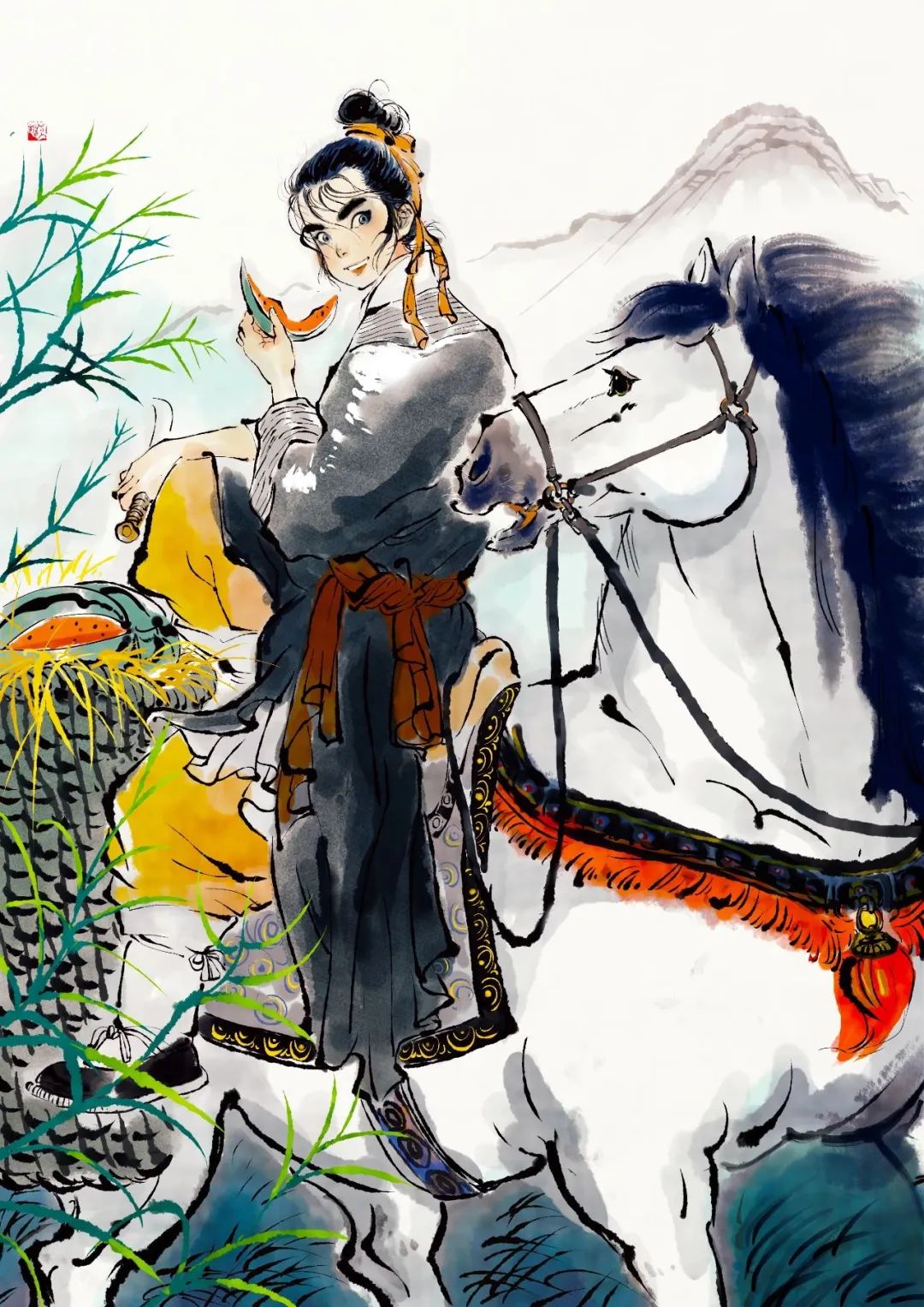 一幅幅筆墨凝煉、用色滋潤的畫里,少年快意闖江湖、俠客豪氣游天下的精彩故事不斷上演。