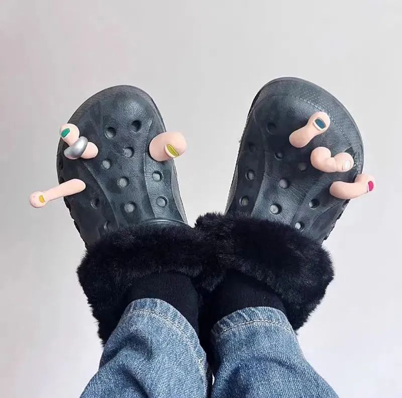 腳趾工程隊編外人員,集涼快與保暖功能為一體的洞洞鞋,既能假裝露出靈活的腳趾,隨機嚇?biāo)酪粋€人,又能保暖,是真正的兩用神器。
