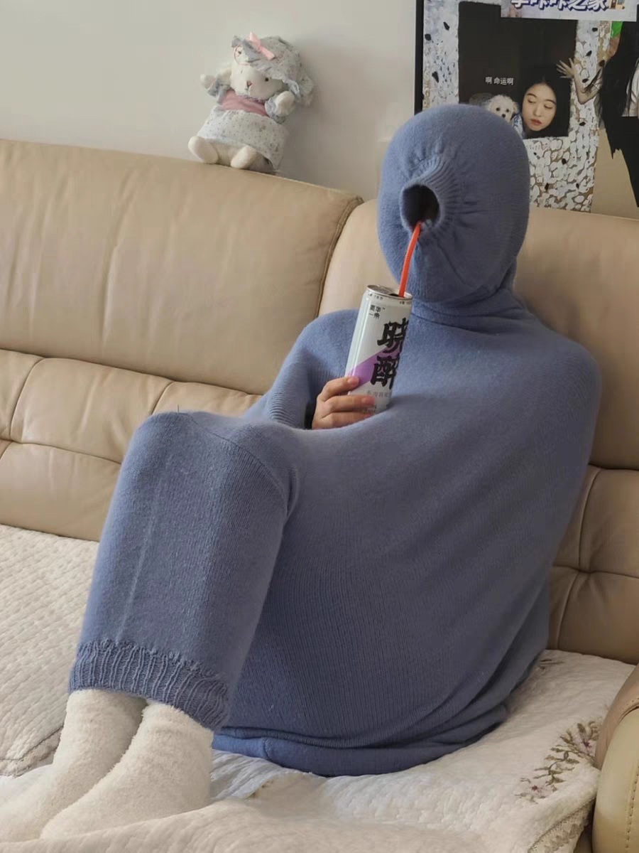 對于i人來說,極度“見不得光”,但這個頭腳一體i人家居服完美滿足你的需求,從頭包到腳,它唯一的缺點大概就是吃東西麻煩了點。