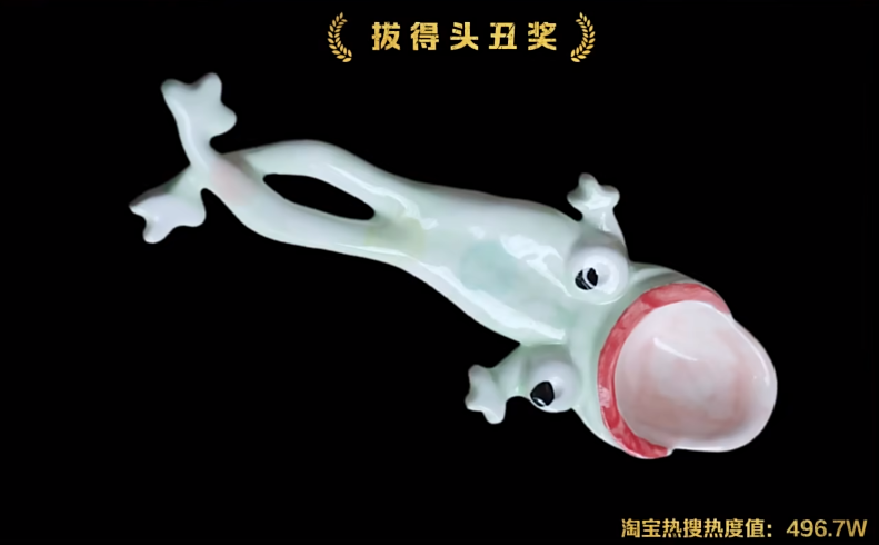 據(jù)商家介紹,創(chuàng)作靈感源自一張攝人心魄的青蛙捕食圖,有意思的是,店家拒不承認(rèn)東西丑,請求丑東西組委會能撤銷青蛙勺的入圍。還把自己的所有商品名前面加上“美東西”“酷東西”“萌東西”。