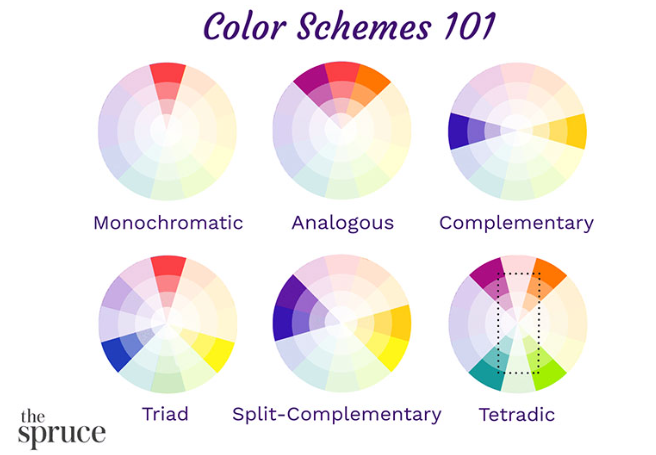 字面上就是如紅色和綠色。還有更多:分裂互補,三色調,方形和矩形方案。每種都有自己的氛圍,為你的設計設定基調。