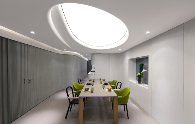 例如,將紋理玻璃通道與更透明的通道混合在同一框架中,非常適合無縫界定不同隱私級別的空間。另一方面,織物分區(qū)可以很好地調(diào)節(jié)光線,同時在協(xié)作工作空間中維護共享環(huán)境。有時與人造光互補,這兩種材料都能夠在整個墻壁或天窗上實現(xiàn)微妙的朦朧發(fā)光效果。