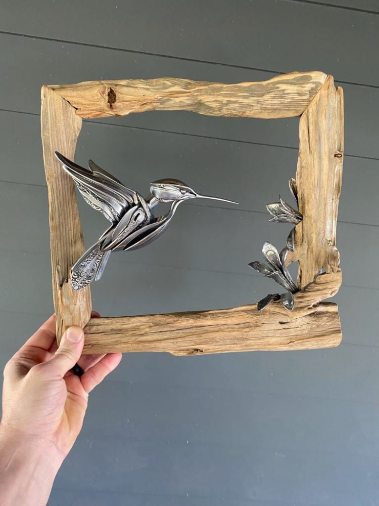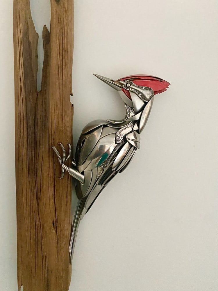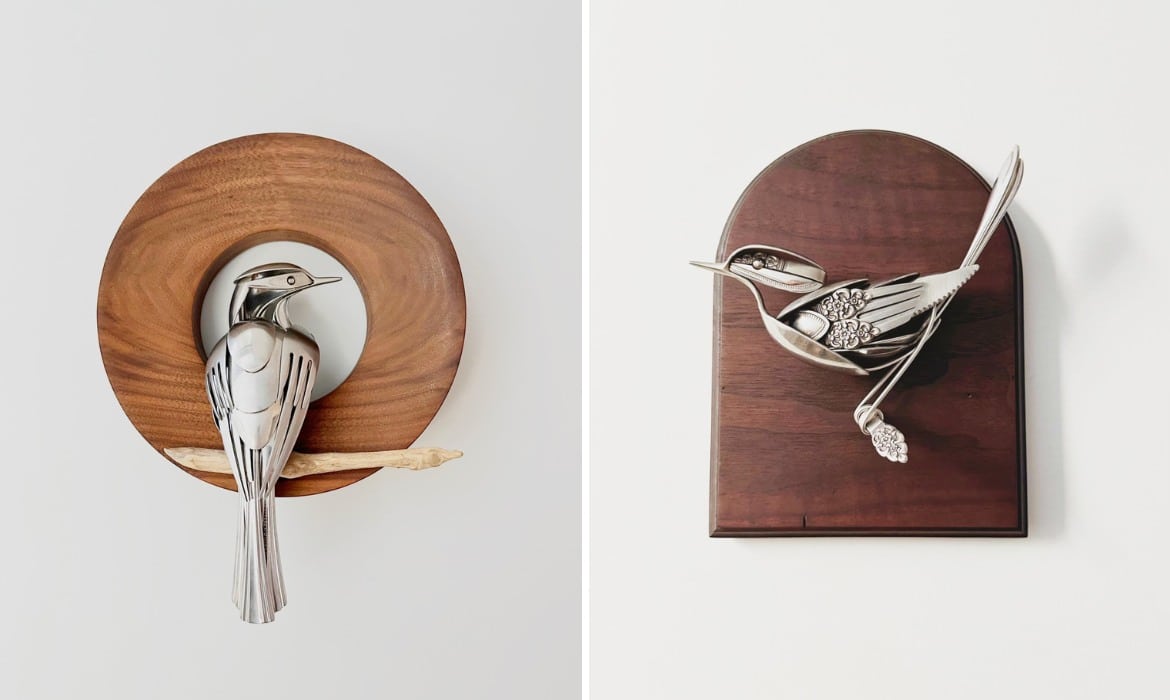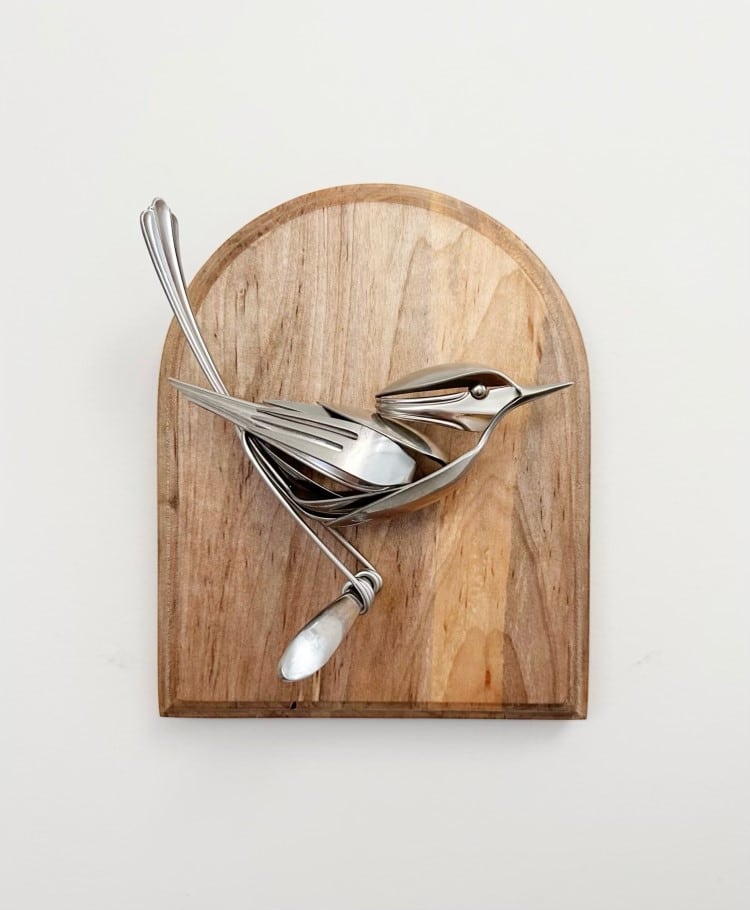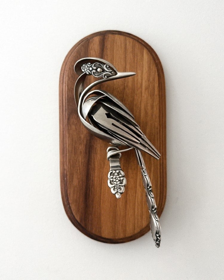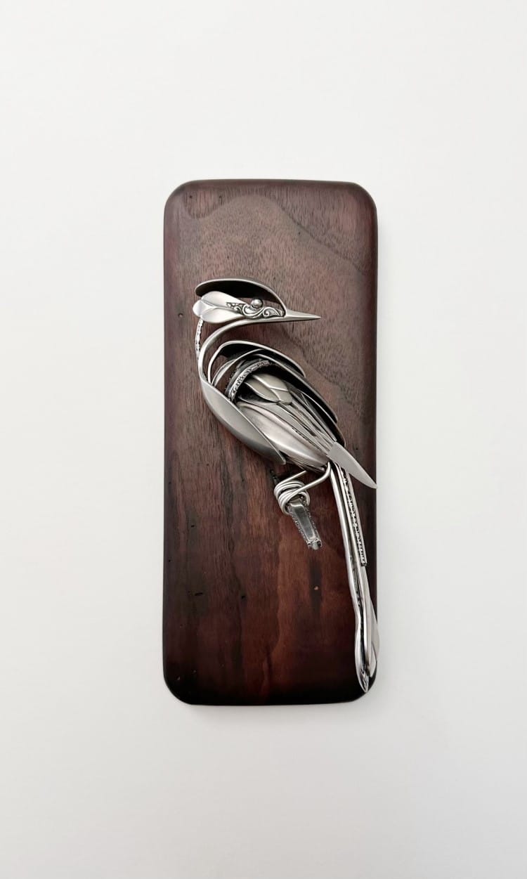 當大多數人看到餐具時,我們想到的是下一頓要吃的飯菜,但南卡羅來納州的藝術家Matt Wilson,又名 Airtight Artwork,卻不這么想。他將勺子、叉子和刀具彎曲、塑造成藝術品。雖然他雕刻了各種動物,但最喜歡的是他的鳥群,這些鳥被他安裝在美麗的木質背景上。