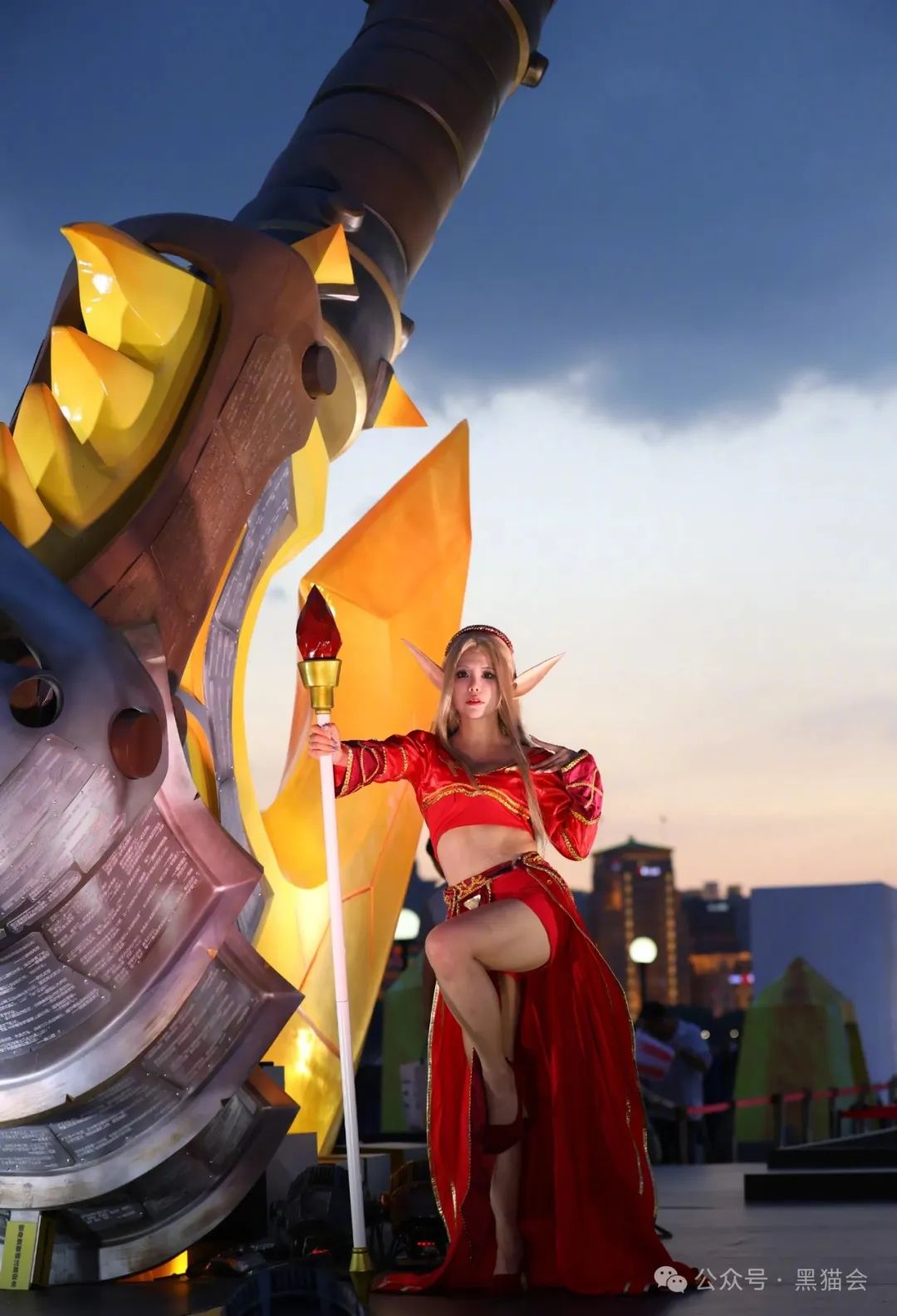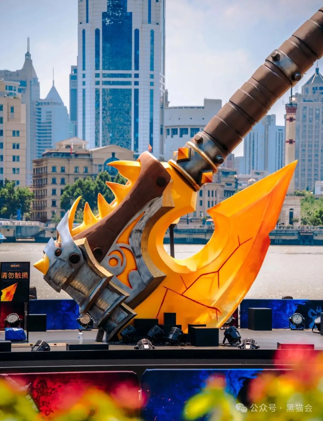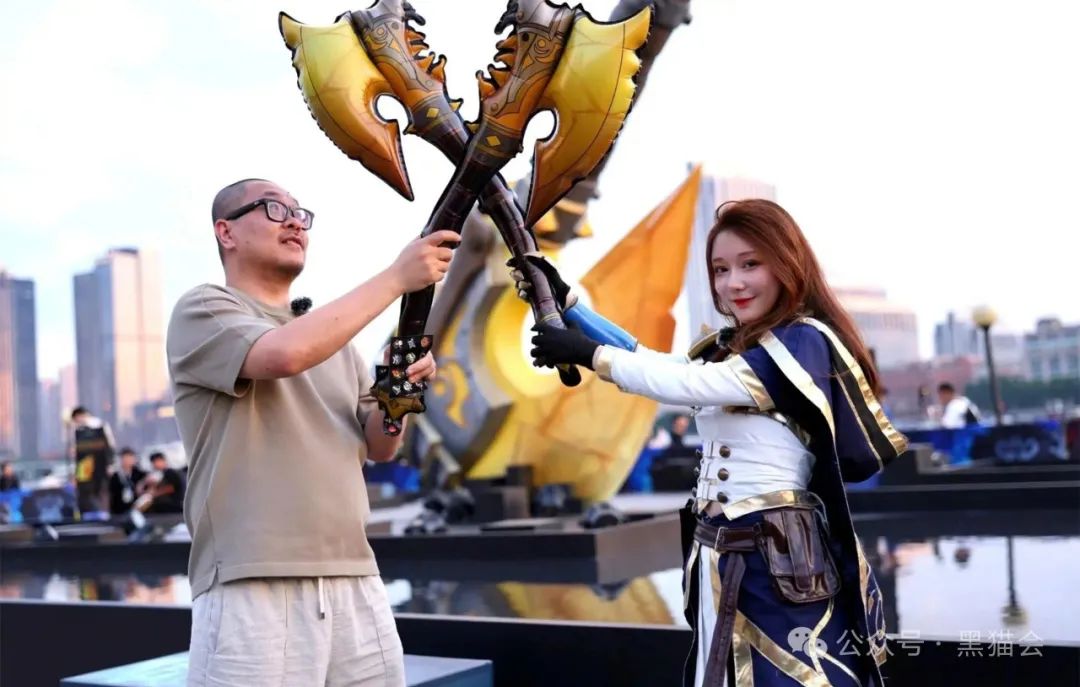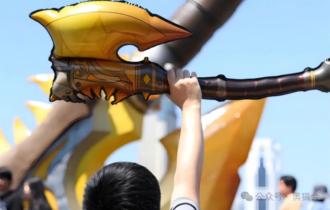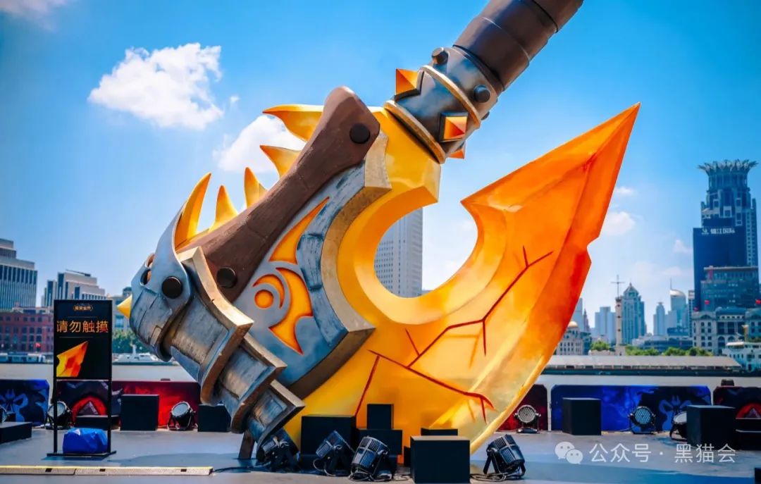 活動(dòng)現(xiàn)場(chǎng),高達(dá)9米的“光鑄血吼”雕塑巍然矗立,雕塑的斧刃由納魯神器打造,夜晚還會(huì)放出微光,為活動(dòng)增添了幾分神秘與神圣感。