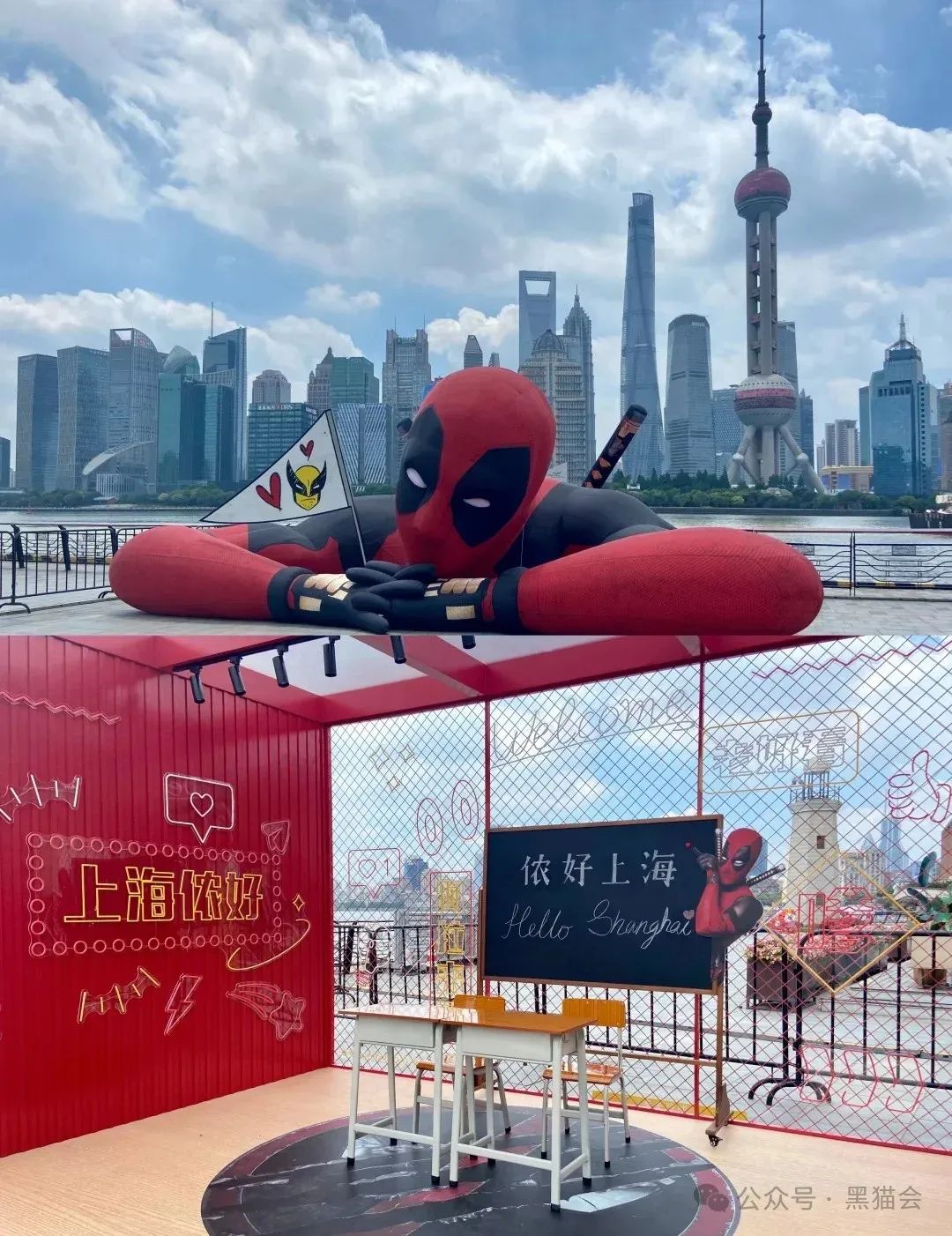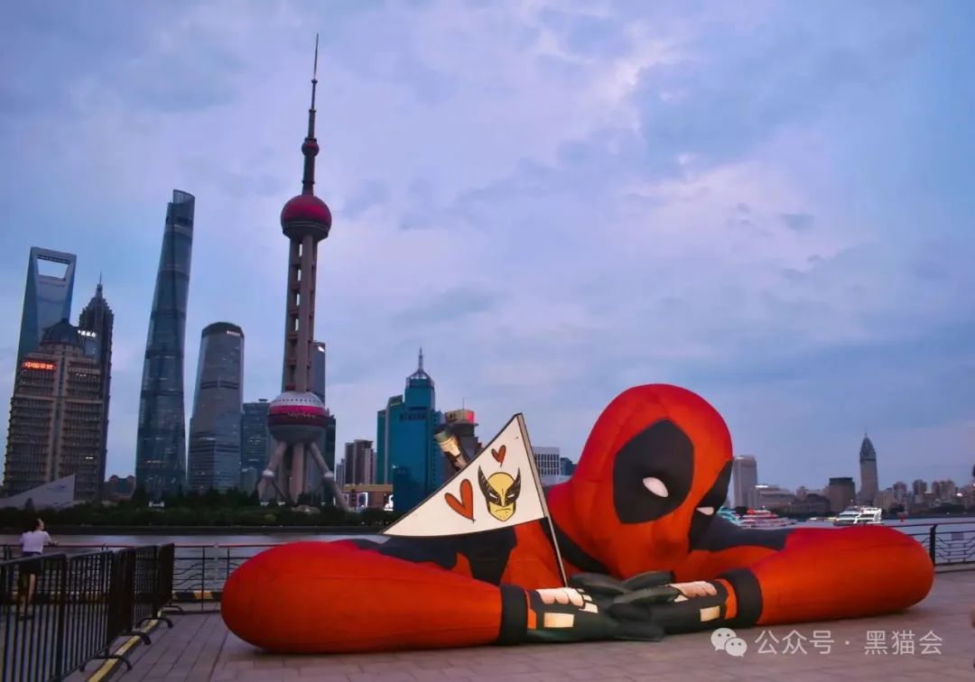 為了為即將于7月26日上映的電影《死侍與金剛狼》的首映禮造勢(shì),7月3日,上海黃浦江邊驚現(xiàn)10米“死侍”巨型藝術(shù)裝置。