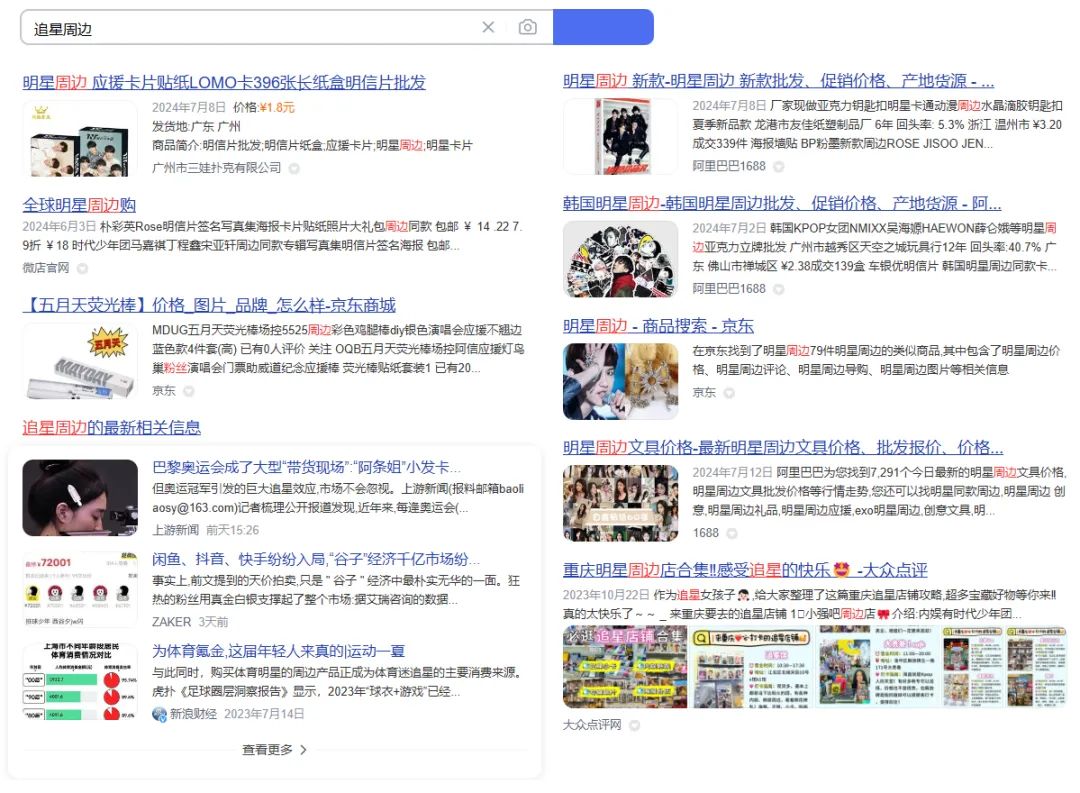 X度【追星周邊】,依靠老花鏡的加持,識別跳過廣告和詐騙網站,在某一頁得到并不全面的周邊種類。